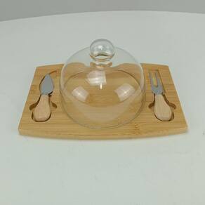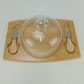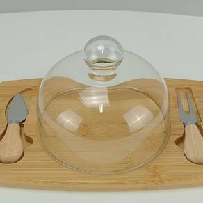 JOGO 4PÇS QUEIJO Altura: 13,5 cm Largura: 28,3 cm Profundidade: 18,3 cm Peso: 0,69 Kg Diâmetro do Corpo: 16 cm Material: Vidro/Bambu Cor: Transparente/Marrom