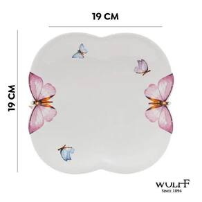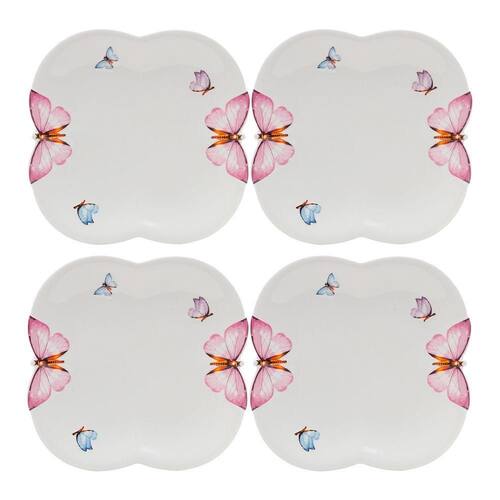 Jogo 4 Prato de Sobremesa Borboletas 19cm Porcelana Branco Wolff
