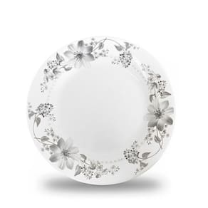 Prato de Sobremesa Vidro Branco Flores Cinza Flowers Grey 20cm Em Casa Tem