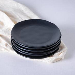 Jogo 4 Pratos para Sobremesa Orgânico Preto Cerâmica 19cm Porto Brasil Brownie Mousse.