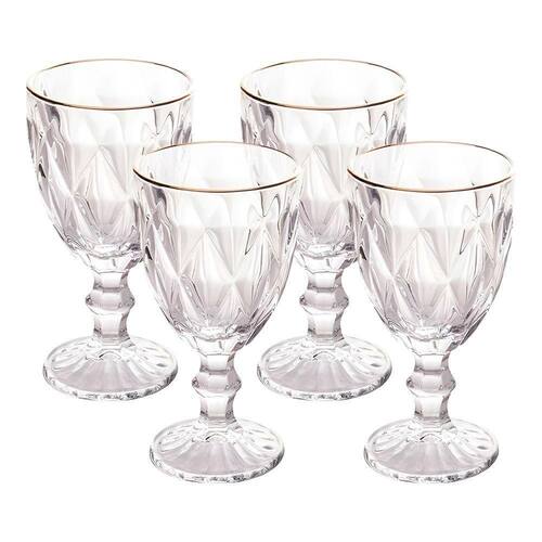 Jogo 4 Taças de Vidro com Borda Dourada Diamond Cor Transparente Água 300ml Class Home