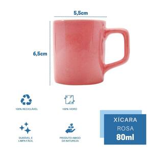 Este conjunto de xícaras para café é uma ótima escolha para quem procura uma opção elegante e charmosa para suas pausas para o café. Cada xícara tem capacidade para 80ml, o que é perfeito para servir um café curto, expresso ou ristretto. A cor rosa é vibrante e alegre, adicionando um toque de cor e personalidade à sua cozinha ou espaço de trabalho. As xícaras são feitas de cerâmica de alta qualidade, o que significa que são duráveis. Além disso, a cerâmica é um material que ajuda a manter a temperatura do café por mais tempo.