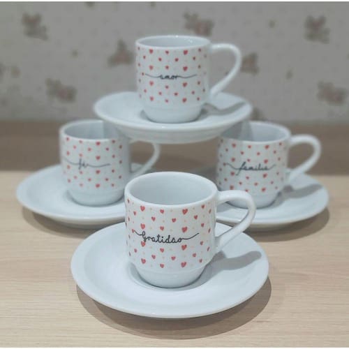 Embalagem contêm 8 peças - 4 xícaras e 4 pires
