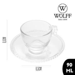 Xícara de Café de com Pires Cristal Pearl Wolff Cor Transparente 90ml