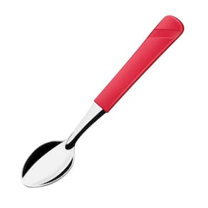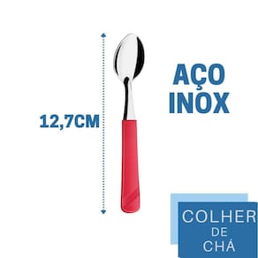 Conjunto de Colheres de Chá As colheres de chá da linha Luna são um conjunto elegante e funcional para qualquer momento em que um toque especial é necessário. Com um cabo vermelho vibrante feito de plástico de alta qualidade, essas colheres são confortáveis de segurar e fáceis de identificar em meio a outros utensílios de mesa. O aço inox das colheres garante que elas permaneçam brilhantes por um longo tempo, enquanto o design elegante torna as colheres uma adição atraente à sua coleção de utensílios de cozinha.