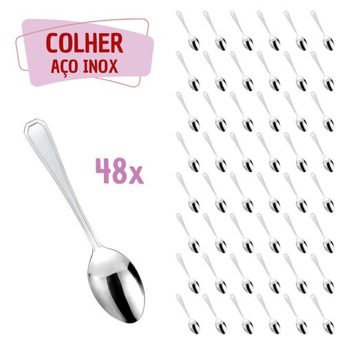 Jogo 48 Pçs Colher Reforçada Inox Restaurante / Bar / Casa