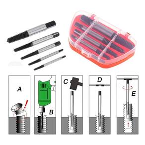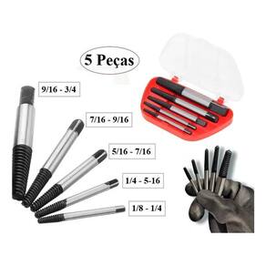 Conteúdo da embalagem: 01 extrator parafuso 3/6; 01 extrator parafuso 6/8; 01 extrator parafuso 8/11; 01 extrator parafuso 11/14; 01 extrator parafuso 14/18. Case para armazenamento.