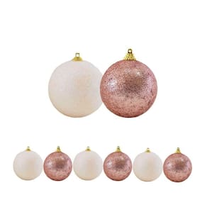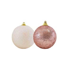Decore sua árvore de Natal com sofisticação utilizando este jogo de bolas natalinas no tom rosê, combinando acabamentos glitter brilhante e flocada rosê claro, que criam um contraste elegante e festivo.