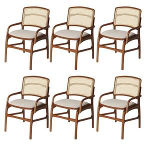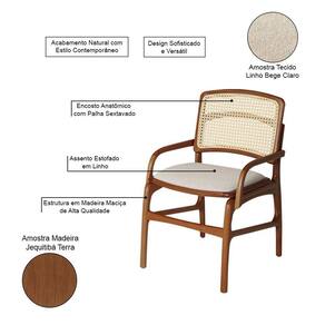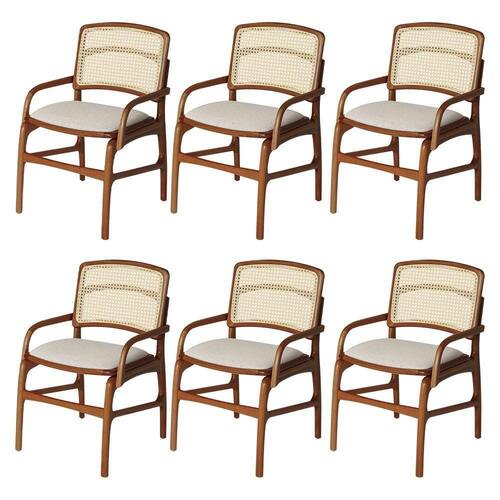 AS IMAGENS SÃO MERAMENTE ILUSTRATIVAS E PODEM SOFRER VARIAÇÕES DE COR E PEQUENOS DETALHES DE ACORDO COM O SEU MONITOR, ILUMINAÇÃO DO AMBIENTE E ATÉ MESMO A SUA PERCEPÇÃO VISUAL.Jogo 6 Cadeiras de Jantar FlorenÃa Estrutura em Madeira Jequitibà Terra BraÃo Encosto Palha Linho Bege