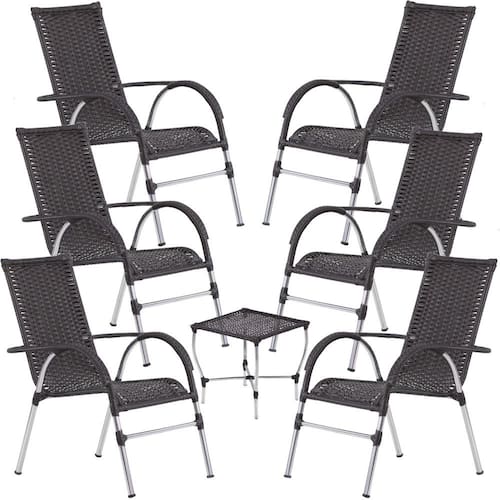 Jogo 6 Cadeiras e Mesa Vênus Área Externa, Jardim, Piscina Trama