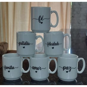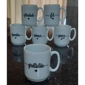 Jogo 6 canecas 120ml Frases Motivacionais - Kit Porcelana