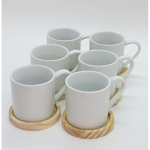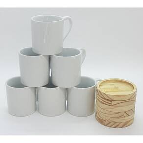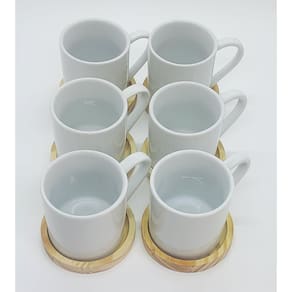 Jogo 6 canecas 210ml c/ pires de Pinus - Porcelana branca