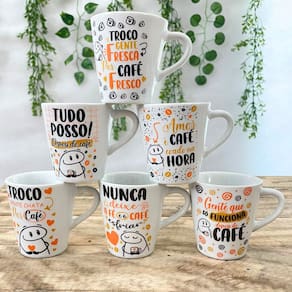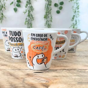 Jogo 6 canecas Cônicas 120ml Flork Café - PorcelanaContém 6 canecas com design bem interessante, você pode presentear as pessoas que você gosta. O envio é aleatório conforme disponibilidade no momento.Forte resistente, pode ir ao micro-ondas e lava louças. Ótimas para servir café com leite, água e bebidas em geral. Decalques com queima e fixação em alta temperatura, o que dá um brilho e charme há qualquer ambiente.OBS: Embalagem contem 6 unidades Marca: Antilope Decor Porcelanas