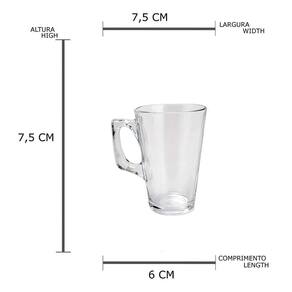 com design moderno e qualidade, esse conjunto de canecas são fabricados em vidros de alta qualidade e resistência. Serve tanto para cafeterias ou ambientes domésticos. Especificações do produto: