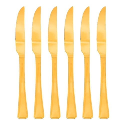 Jogo 6 Facas Dourada de Churrasco Jantar Victoria Gold Inox Fratelli