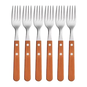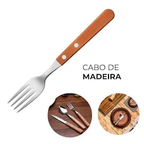 Cada garfo possui lâminas em aço inoxidável, que conferem resistência à corrosão e facilitam a limpeza. O cabo de madeira proporciona uma pegada firme e confortável, além de adicionar um toque de elegância à peça. A combinação de materiais garante a durabilidade do conjunto, mesmo com uso frequente.