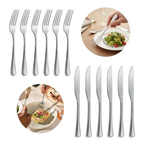 Jogo 6 Garfos e 6 Facas Aço Inox Cor Prata Linha Silver Em Casa Tem 21cm