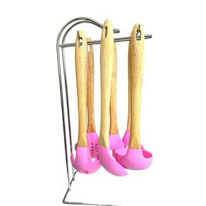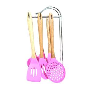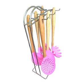 Contém: 1 Concha 30cm; 1 Escumadeira 30cm; 1 Espátula vazada 32cm 1 Colher 32cm 1 Colher vazada 32cm 1 Pegador de arroz vazado 32cm; 1 Porta utensílios para pendurar;