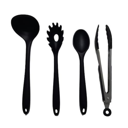 01 Escumadeira de Silicone - 32 cm 01 Concha de Silicone - 28 cm 01 Colher de Silicone - 27 cm 01 Espatuala Vazada de Silicone Preta - 30 cm 01 Pegador de Silicone Preto - 28 cm 01 Colher de Servir em Silicone 22,5 cm