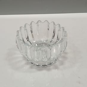 SOBREMESA Altura: 6,5 cm Largura: 10 cm Profundidade: 10 cm Espessura: ,5 cm Peso: 0,32 Kg Diâmetro da Base: 8 cm Diâmetro do Topo: 9 cm Material: Vidro Cor: Transparente