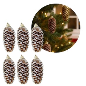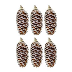 Jogo 6 Pinhas Naturais Decoradas com Glitter Prata – Natalino Pendente