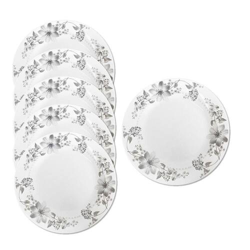 Jogo 6 Prato de Sobremesa Vidro Branco Flores Cinza Flowers Grey 20cm Em Casa Tem