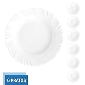 Jogo com 6 Pratos 23,5cm Redondos Fundos Pétala Duralex Nadir Figueiredo