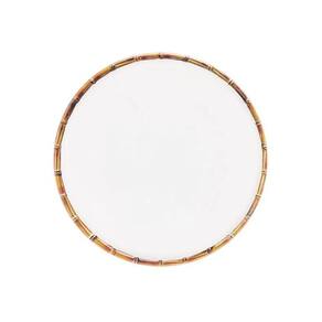Prato Raso 27cm Borda de Bambu Melamina Branco Bon Gourmet
