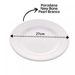Jogo 6 Pratos Raso de Porcelana New Bone Pearl Branco 27cm