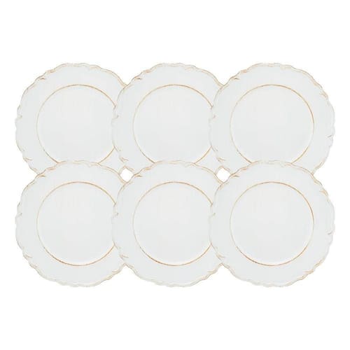 Jogo 6 Sousplat Redondo Patinado Plástico Moon Branco Lyor 33cm