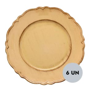 Jogo 6 Sousplats Patinado De Plástico Moon Bege Lyor 33cm