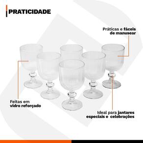 Jogo 6 Taças 240Ml Vidro Transparente Para Vinho Agua Sucos