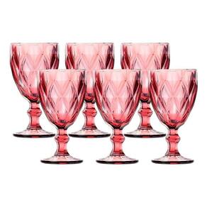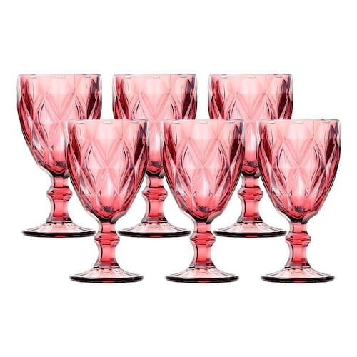 Jogo 6 Taças de Vidro Diamond Diamante Rosa Lilás 300ml Água Class Home