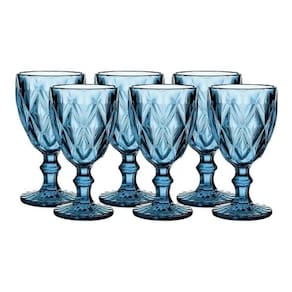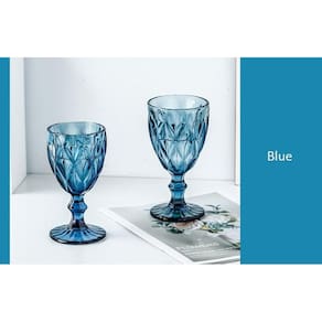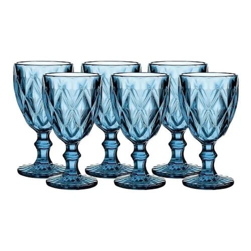 Jogo 6 Taças Diamond 310ML De Vidro 6 Cores Disponíveis Taça para Vinho Drinks Sucos Água Luxo Cor: Azul Incríveis Taças de Vidro Resistente 310ML Diamond