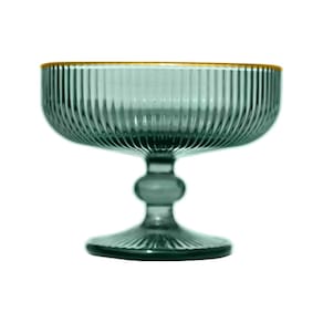 Jogo De 6 Taças Para Sobremesa 310ml Borda Dourada Cameratta Verde L´hermitage Ref: 29641   As taças da linha Cameratta são nobres e encantadores. Com detalhes lapidados, as peças são cheias de personalidade e vão surpreender os convidados. Ideal para qualquer tipo de sobremesas e sorvete.   - Altura: 9,8cm - Diâmetro: Ø11,8cm - Capacidade: 310ml   - Material: Vidro - Cor: Verde com Borda Dourada - Tipo de Embalagem: Caixa litografada - Contém: 6 Unidades - Marca: L´Hermitage