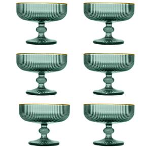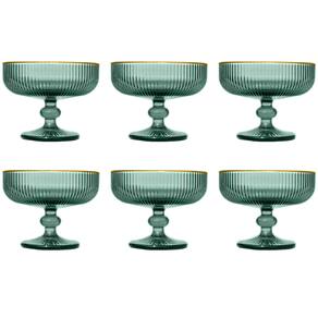 Jogo 6 Taças Sobremesa 310ml Borda Dourada Cameratta Verde L´hermitage