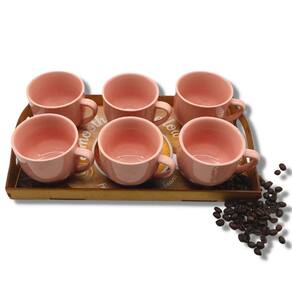 Jogo 6 xicaras 170ml porcelana para café chá caixa mdf rosa Jogo 6 xicaras de porcelana para café chá 170ml caixa em mdf decorada