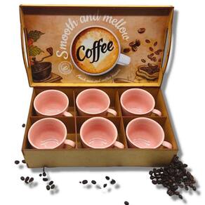 Jogo 6 xicaras de porcelana para café chá 170ml caixa em mdf decorada