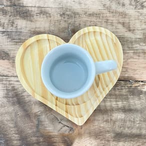 Jogo 6 xícaras café 80ml semi-empilháveis com pires coração - Porcelana branca Peças de porcelana feitas de material de alta qualidade, queimados em alta temperatura, o que os torna fortes, resistentes e com alto brilho, e deixa qualquer ambiente mais bonito e moderno. Nova tendência, mistura de porcelana com madeira, charmosa e moderna para servir em xícaras para todos de sua casa e receber as visitas e amigos. A porcelana tem uma enorme vantagem sobre outros materiais, pois é fácil de limpar e não absorve cheiro, o que deixa a peça e o ambiente livre de mal cheiro. São resistentes ao forno e micro-ondas. Cor Branca Capacidade 80ml OBS: Por se tratar de madeira de pinus natural, entre os pires podem existir pequenas variações na tonalidade das cores da madeira. Pode haver variação de tonalidade entre as peças de porcelana devido a diferentes lotes de queima. Embalagem contêm 6 peças (6 xícaras e 6 pires) Marca: Antilope Decor Porcelanas