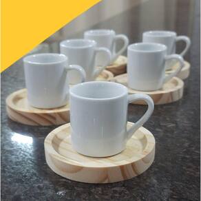 Nova tendência, mistura de porcelana com madeira, charmosa e moderna para servir em xícaras para todos de sua casa e receber as visitas e amigos.