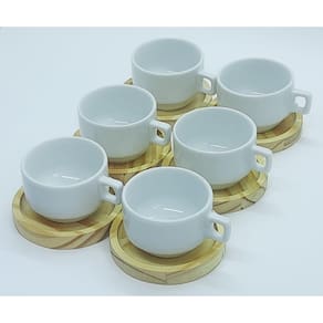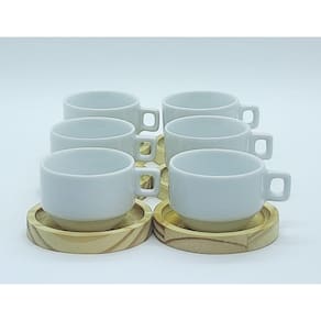 Jogo 6 xícaras café/chá hotel 100ml empilháveis com pires de Pinus - Porcelana branca