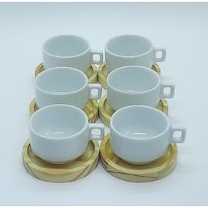 Nova tendência, mistura de porcelana com madeira, charmosa e moderna para servir em xícaras para todos de sua casa e receber as visitas e amigos.