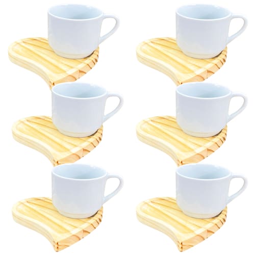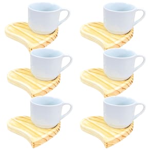 Jogo 6 xícaras café/chá hotel 200ml empilháveis com pires de Pinus coração pequeno - Porcelana branca