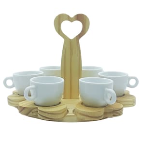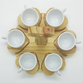 Nova tendência, mistura de porcelana com madeira, charmosa e moderna para servir em xícaras para todos de sua casa e receber as visitas e amigos.