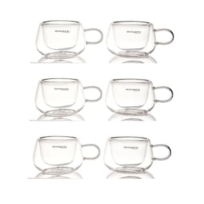 Produzido em Vidro Borossilicato soprado, com parede dupla, é muito mais resistente. Apropriado para bebidas frias e quentes, podendo ser igualmente utilizado para cafés e chás.