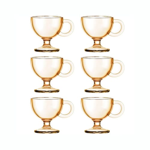 - Dimensões da Peça: 11,5 x 9 x 9cm - Contém: 6 xícaras - Capacidade: 200ml - Material: Vidro - Cor: Cinza com borda Dourada - Tipo de embalagem: Caixa litografada - Marca: Haüskraft Premium