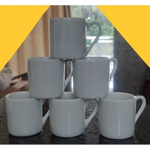 Jogo 6 xícaras de Café - Tradicional - 80 ml base reta - Porcelana branca