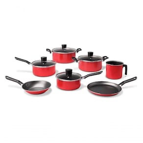 Jogo 7 Peças Brinox Garlic Vermelho Antiaderente Pro-flon - Panelas, Caçarolas, Frigideira, Fervedor E Tapioqueira Em Aluminio 1,2 Mm