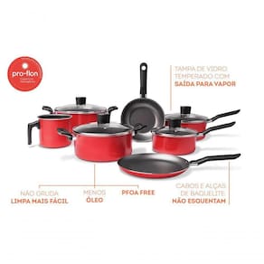 Nome 60 Caracteres - Jogo 7 peças Brinox Garlic vermelho antiaderente pro-flon