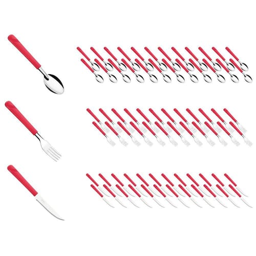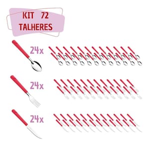 Jogo 72 Talher Faca Garfo Colher Inox Vermelho Luna Casa